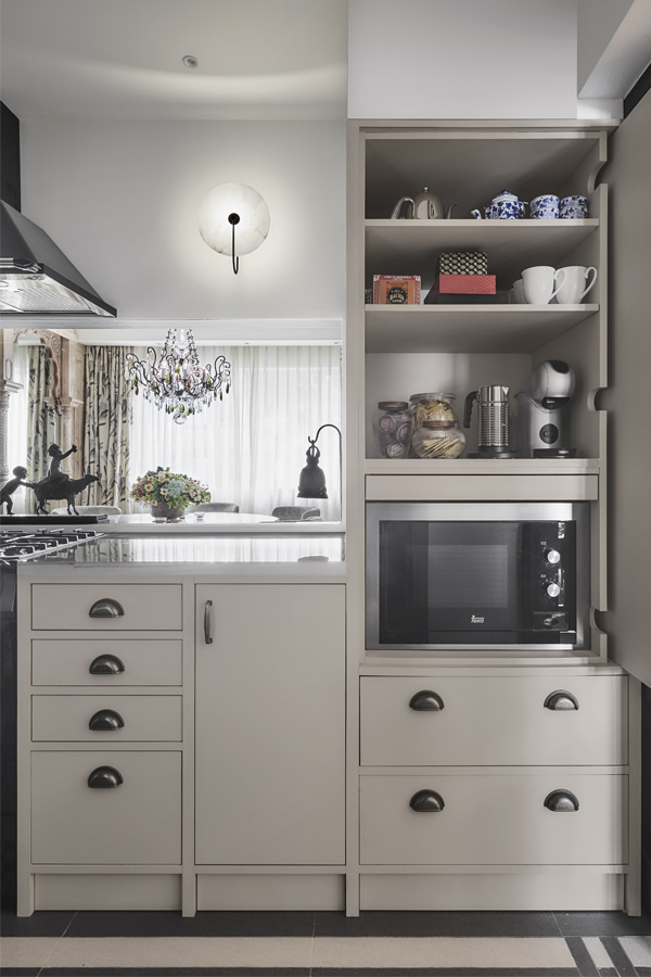 Should you plan a dishwasher, we want to ensure that the working direction is easy, and we plan storage for plates and cutlery close by. Small appliances would need to be taken into consideration too, and if possible, an appliance bay is useful to keep these essentials close at hand.